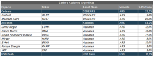 En relación a las acciones a elegir para buscar capturar este aumento de valor es que desde San Juan Bursátil presentamos semanalmente una cartera de acciones argentinas, que detallamos a continuación.